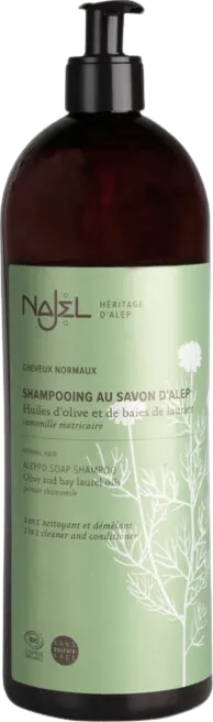 Découvrez le shampooing au savon d'Alep Najel, enrichi en huiles d'olive et de laurier. Parfait pour nourrir et vos cheveux, il offre un nettoyage en douceur et une sensation de fraîcheur naturelle. Idéal pour une utilisation quotidienne et pour les cheveux normaux Transformez votre routine capillaire dès aujourd'hui !