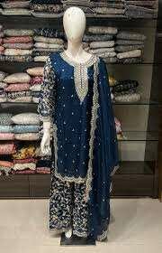 3Pcs woman's Stitched crinkle Chiffon embroidered suit