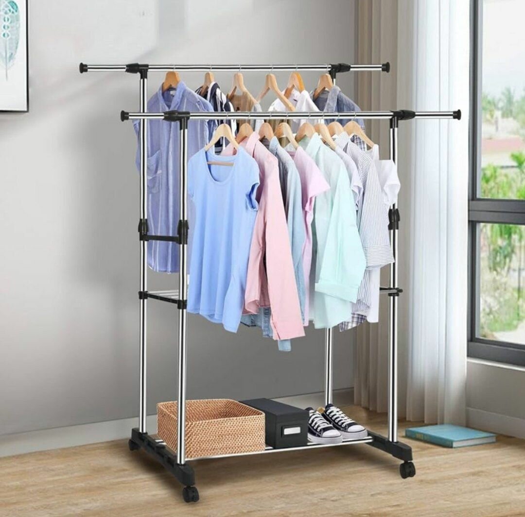 Передвижная стойка вешалка для одежды двухуровневая Double-Pole широкая до 30 кг