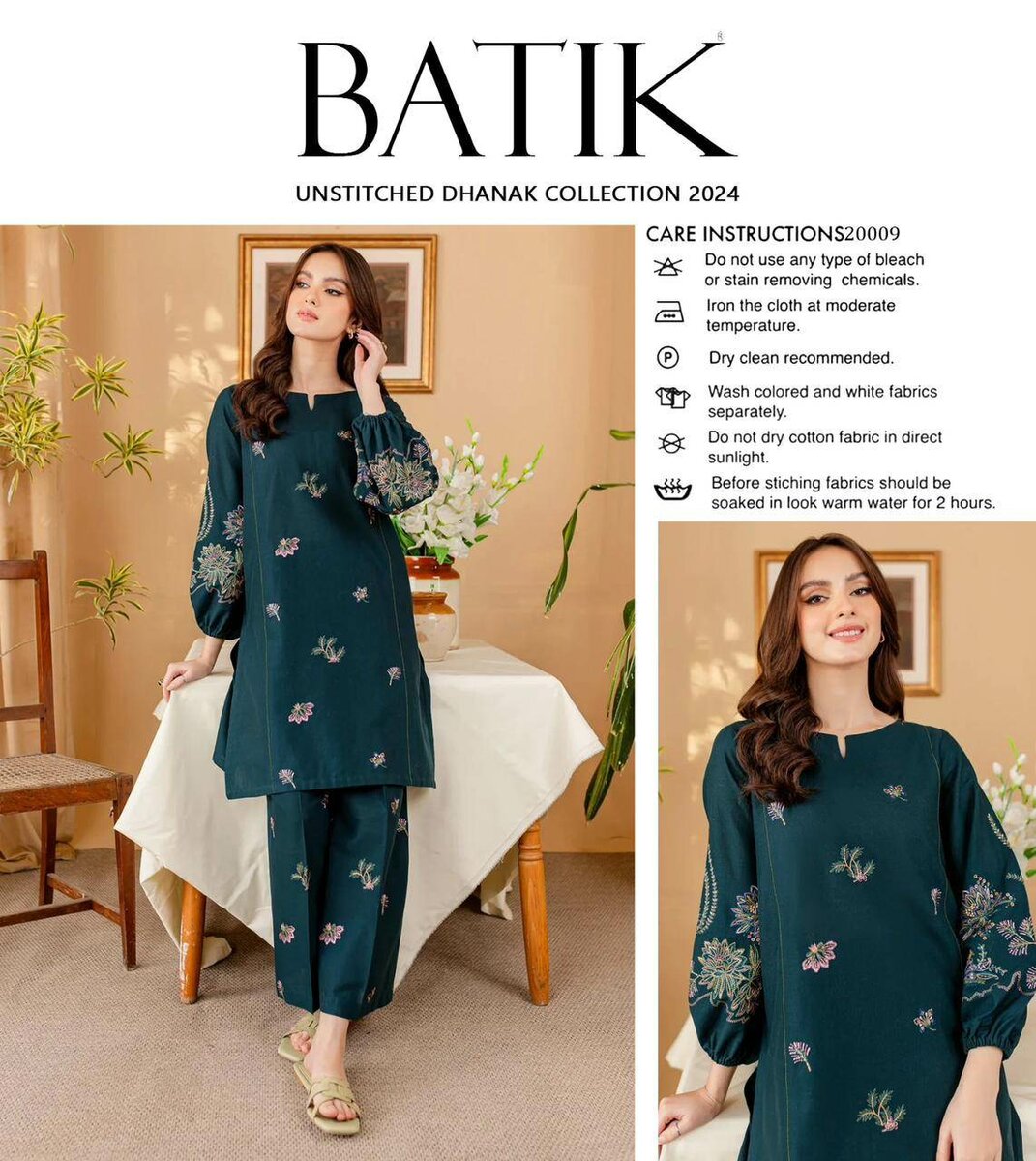 ️ *Dhanak 2pc* ️ *Brand Batik* ️ *Front Embroidered* ️ *Sleeves Embroidered* ️ *Plain Back & Embroidery Trouser*️ ️ **Sufficient sleeves fabric for all customers* *. PRICE 2600