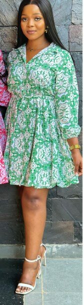 Shirt dress green with white print, size M-XL