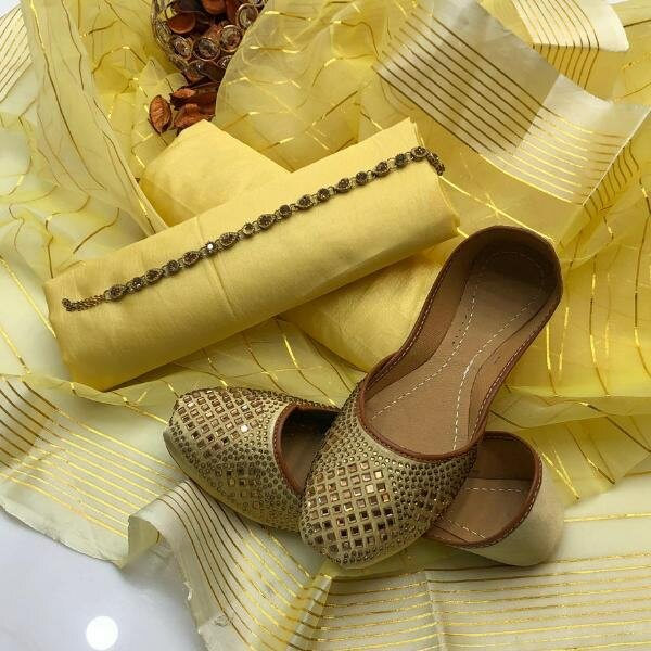 Package Includes: 1 x Shirt, 1 x Trouser, 1 x Dupatta, 1 x Khussa Pair