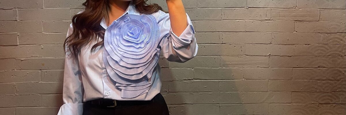 Рубашка в голубом цвете и с акцентом в виде цветка