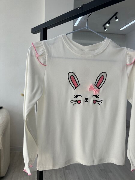 Детская легкая хлопковая кофточка с рисунком зайчика