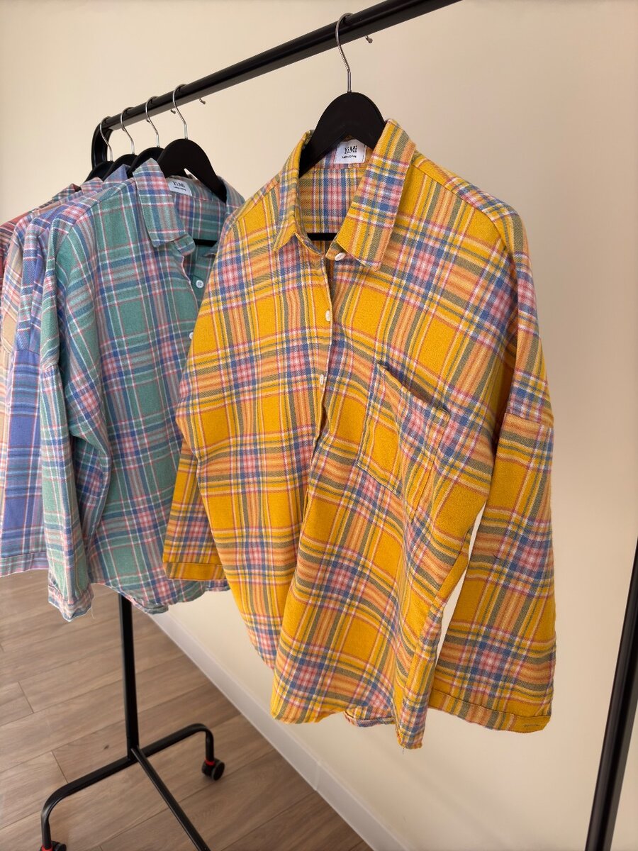 Стильная женская рубашка в клетку с модным дизайном и заниженными рукавами. Идеально подойдёт для создания повседневного или кэжуал образа. Лёгкая и удобная ткань делает её отличным выбором для любого сезона. Размер стандарт S, M , 42-46