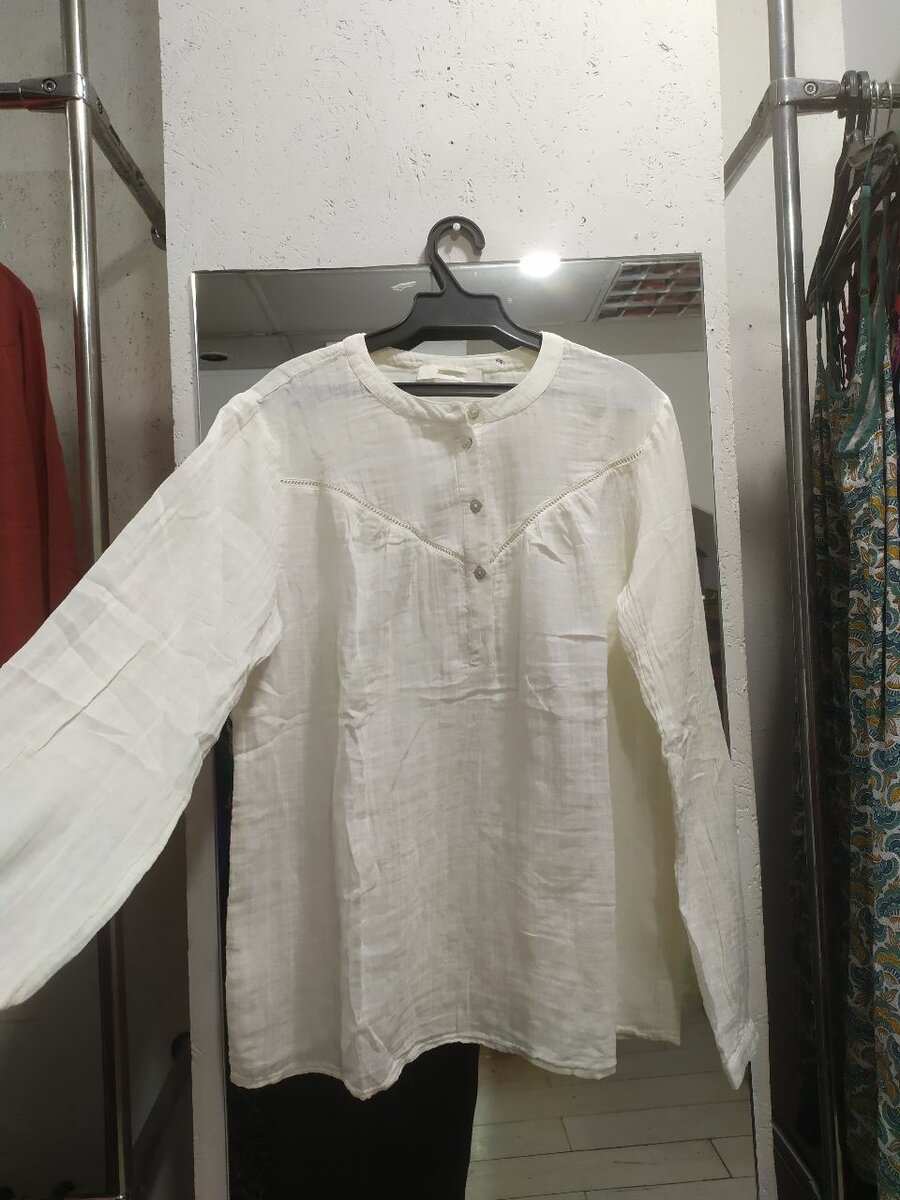 Муслиновая блузка, свободная Цвет айвори 100% хлопок Производство Индия Размерный ряд: M, L, XL