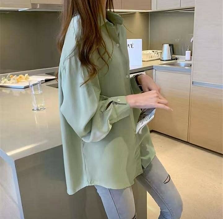 Рубашкого фисташкового цвета, тонкий материал, свободный крой