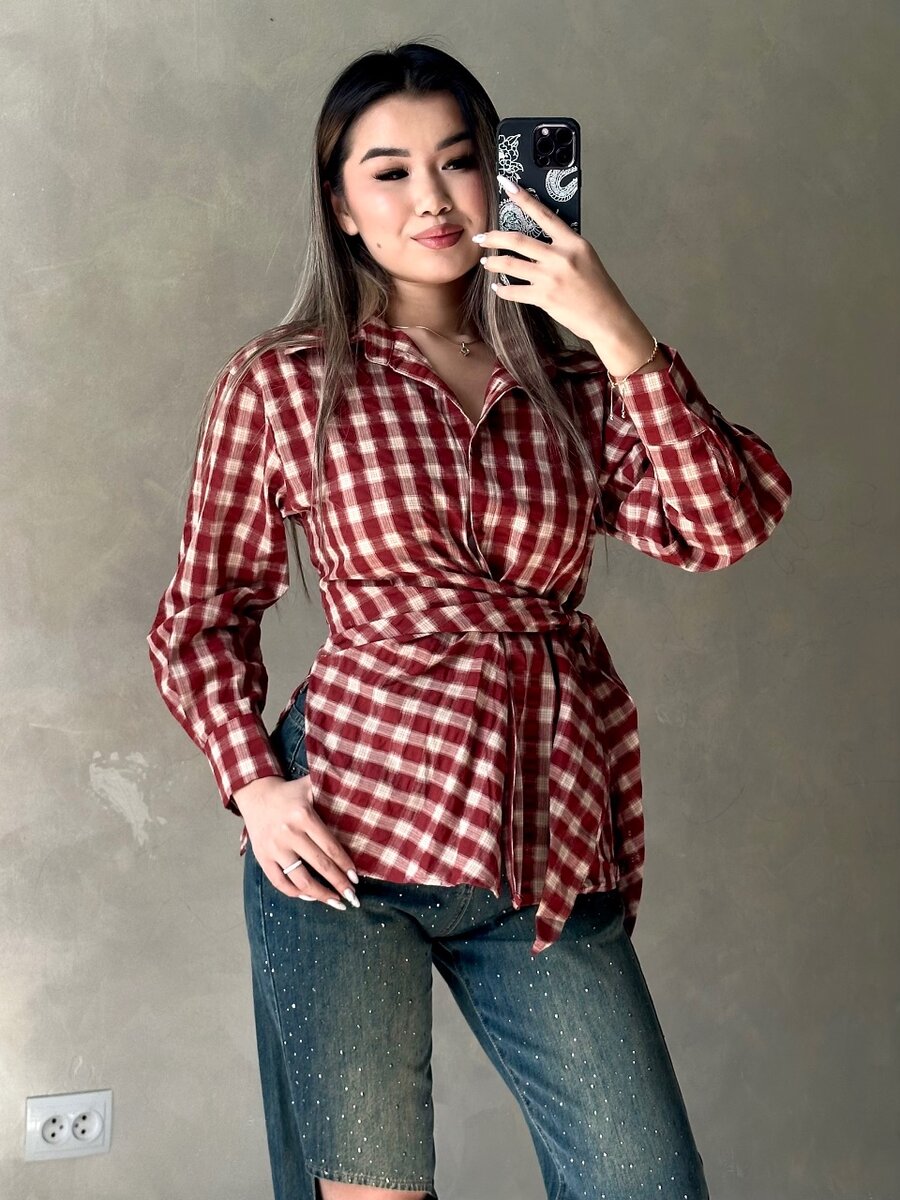 Рубашки в клетку с завязкой на поясе