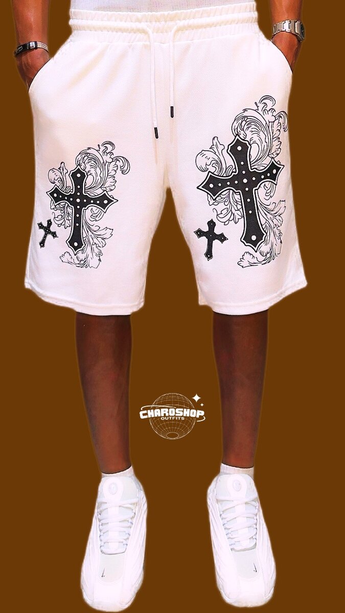 Optez pour un style unique avec notre short blanc orné de motifs croix élégants. Confortable et tendance, il est parfait pour les journées décontractées ou un look streetwear affirmé. Fabriqué en matériaux de qualité pour un confort optimal. Idéal pour les amateurs de mode à la recherche d'un article original et polyvalent.