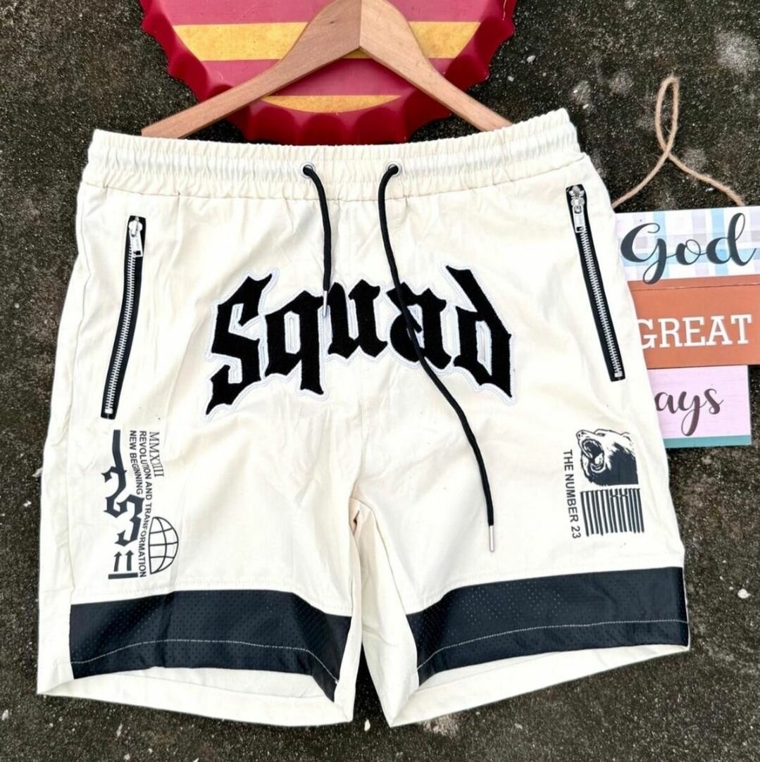 Stylé et confortable, idéal pour le sport et la détente. Doté de poches zippées, design moderne "Squad", parfait pour l'été.