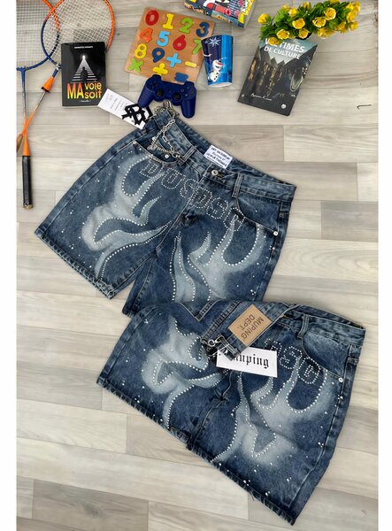 Explorez la tendance avec ce short en denim imprimé. Confortable et stylé, il est parfait pour les sorties décontractées. Associez-le à votre t-shirt préféré pour un look estival incontournable. Idéal pour un usage quotidien et pour les amateurs de mode audacieuse.
