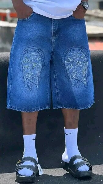 Découvrez notre short en jean audacieux, orné de motifs uniques et d'une chaîne stylée pour un look urbain tendance. Parfait pour les sorties décontractées, il combine confort et style. Associez-le à vos sneakers préférées pour un effet encore plus cool !
