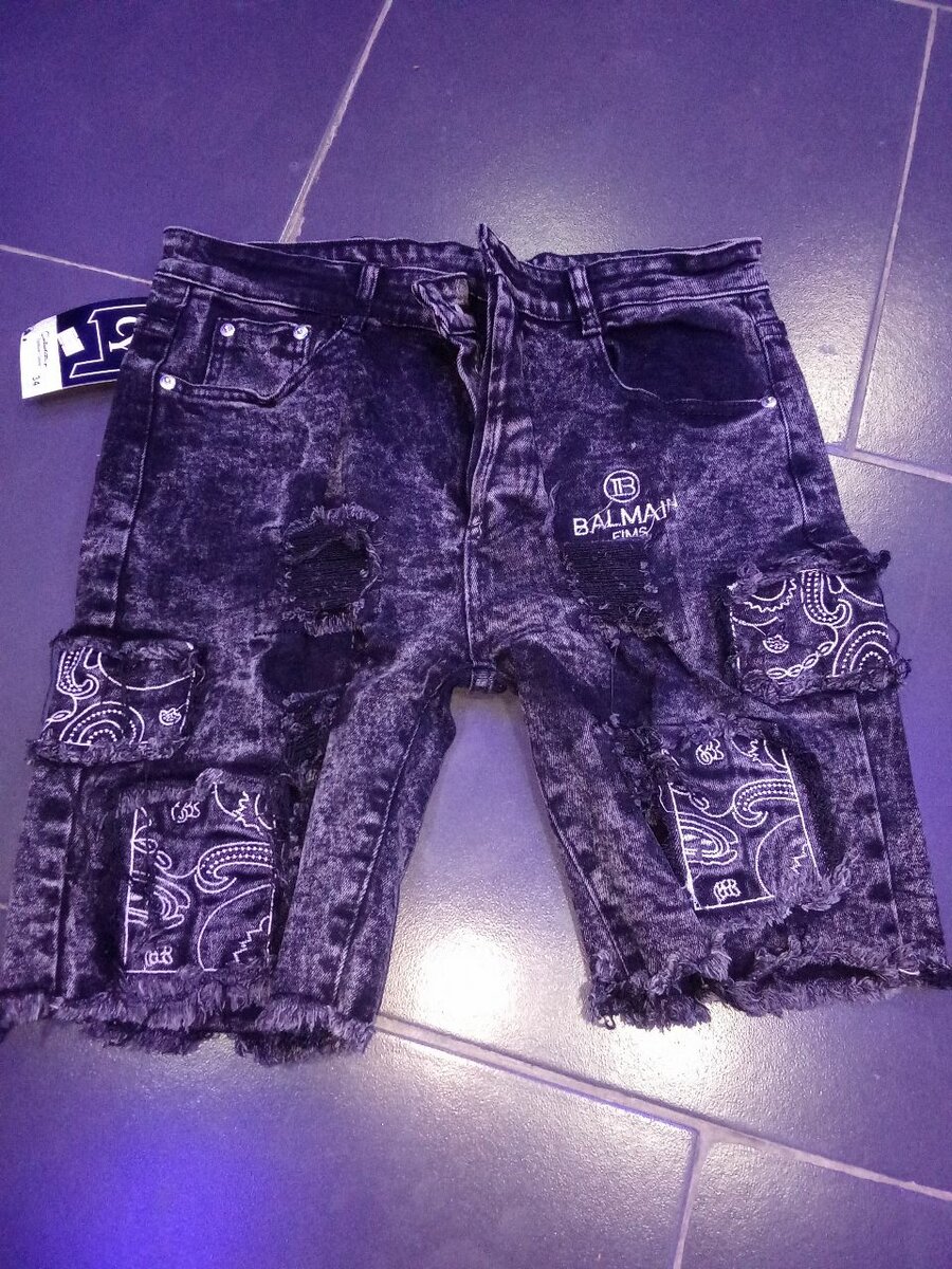 Ce short en jean délavé pour homme offre un look branché avec ses détails déchirés et ses motifs uniques. Confortable et idéal pour un style décontracté, il est parfait pour l'été. Associez-le à un t-shirt simple pour un look tendance !