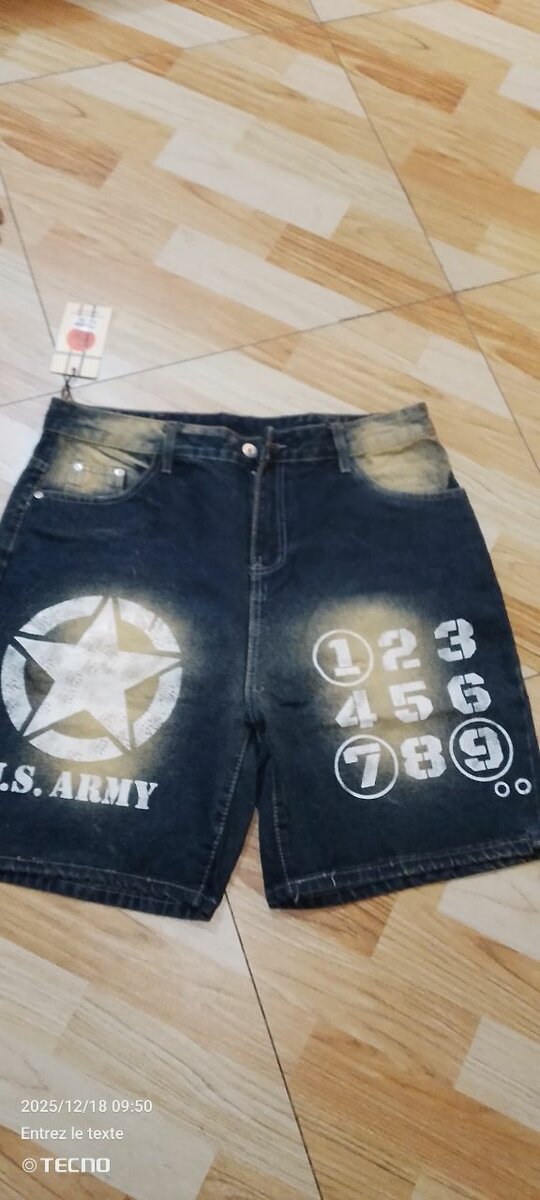 Short en jean délavé avec imprimé stylé. Idéal pour une allure décontractée et tendance. Parfait pour les sorties estivales ou les tenues urbaines. Tissu résistant et confortable.