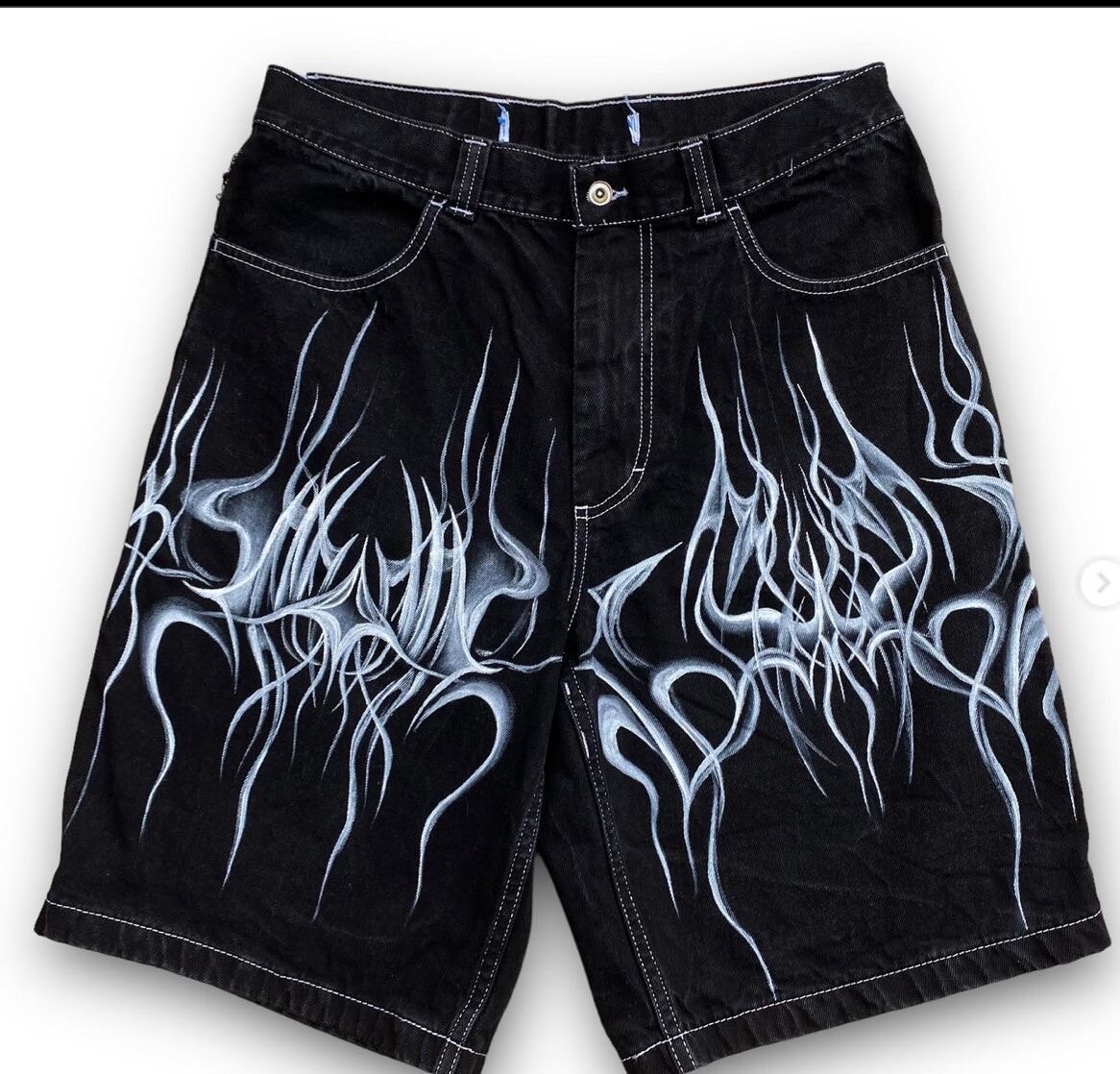 Optez pour ce short en jean noir au motif artistique. Parfait pour un style urbain et moderne. Confortable, durable et idéal pour toutes vos aventures en plein air.