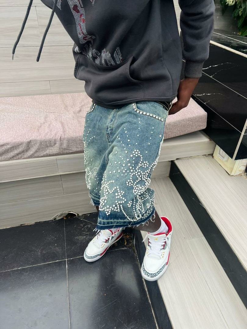 Découvrez ce short en jean perlé qui allie confort et style avec ses détails scintillants. Idéal pour un look décontracté mais chic, il est parfait pour les sorties en ville ou les occasions spéciales. Adoptez ce vêtement unique pour vous démarquer avec élégance.