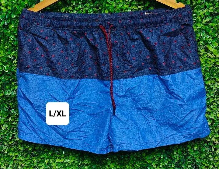 Short de bain confortable et stylé, idéal pour la plage ou la piscine. Fabrication de haute qualité, avec un design moderne en deux tons et une taille réglable pour un ajustement parfait. Taille L/XL.