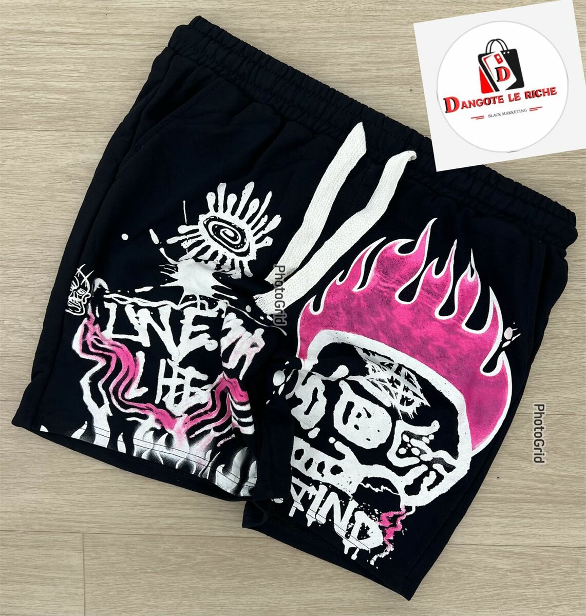 Découvrez notre short tendance en coton, orné de motifs crâne artistiques et de couleurs vives. Parfait pour un style décontracté et unique, idéal pour l'été.