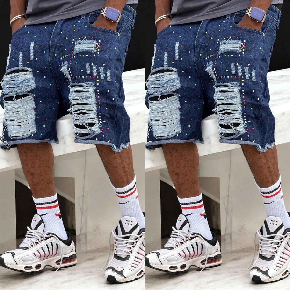 Découvrez ces shorts déchirés tendance pour homme, parfaits pour un style urbain et décontracté. Conçus avec des détails usés et des touches de couleur, ils ajoutent une dimension cool à votre garde-robe. Idéal pour les sorties décontractées ou les événements en plein air. Exprimez votre style unique avec ces pièces incontournables.