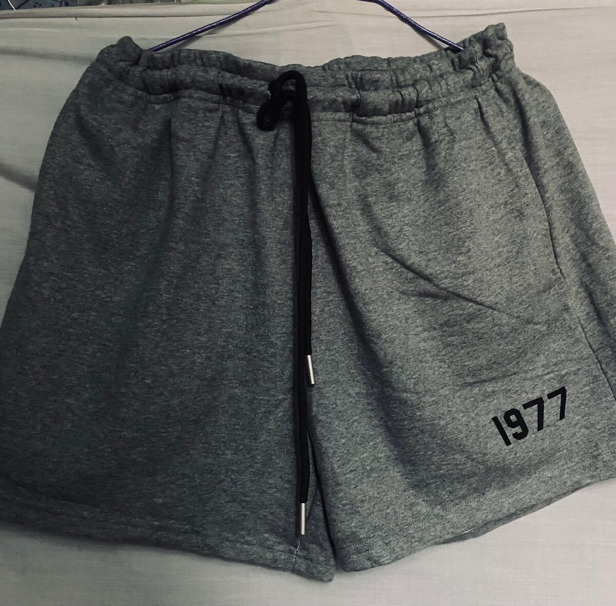 Optez pour ces shorts décontractés gris avec élastique et cordon pour un ajustement parfait. Idéal pour les loisirs ou le sport, ils offrent confort et style avec une poche arrière pratique. Le chiffre '1977' ajoute une touche rétro authentique. Parfaits pour se relaxer à la maison ou pour une promenade en extérieur.