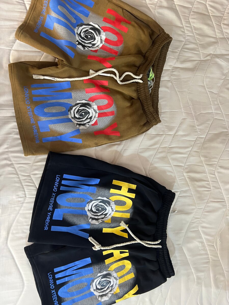Découvrez nos shorts en coton avec impression graphique "Holy Moly". Parfaits pour un look détendu cet été. Disponibles en couleurs variées pour s’adapter à votre style personnel. Idéal pour les sorties casual ou les journées à la plage.
