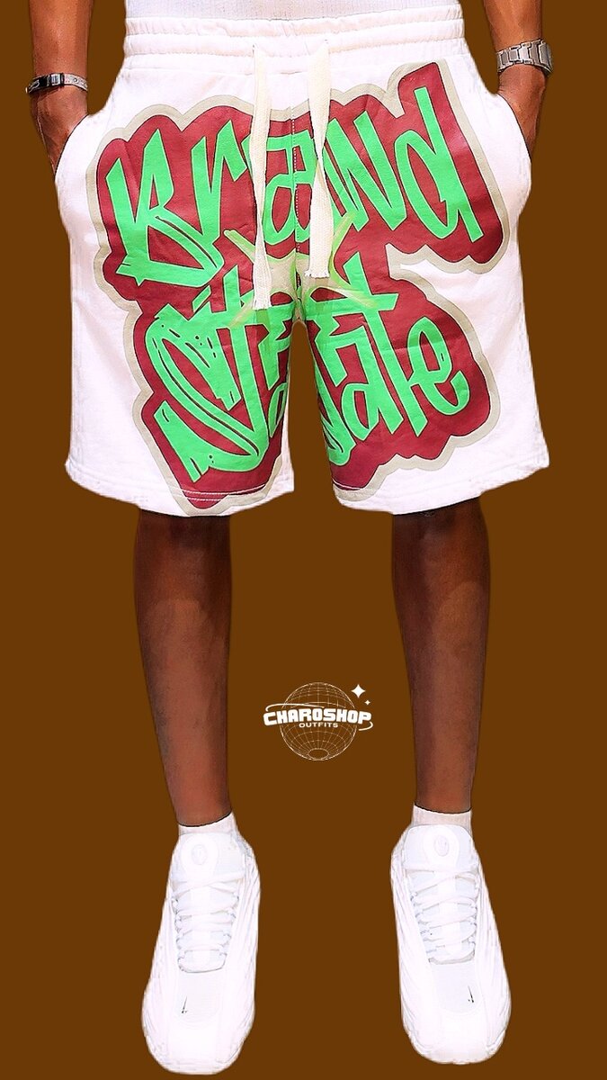 Exprimez votre style avec ces shorts en coton à design coloré et moderne. Parfaits pour un look décontracté, ces shorts offrent confort et originalité. Idéal pour les sorties détendues et l'été.