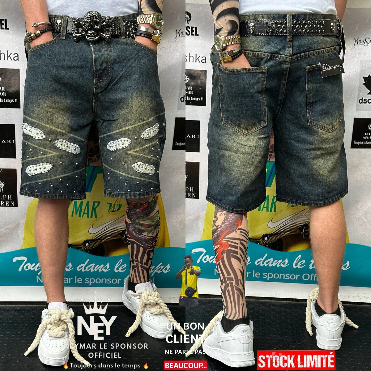 Découvrez notre short en jean ultra tendance avec détails cloutés. Parfait pour un look audacieux et stylé cet été. Confortable et robuste, ce short s'accorde facilement avec vos tenues décontractées. Idéal pour une sortie en ville ou un festival.