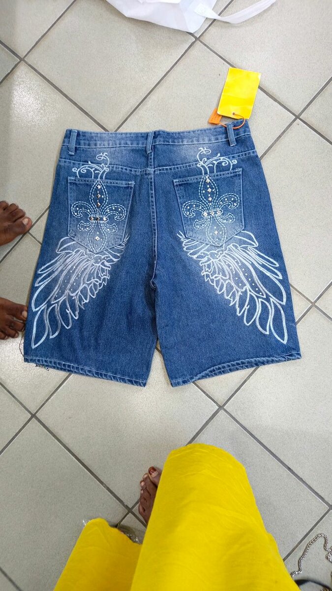Découvrez nos shorts en jean avec une magnifique broderie d'ailes. Parfait pour un look estival et décontracté, ce short s'accorde facilement avec vos tenues préférées. Idéal pour les sorties en plein air ou les vacances à la plage. Style unique et confortable pour toutes les occasions.