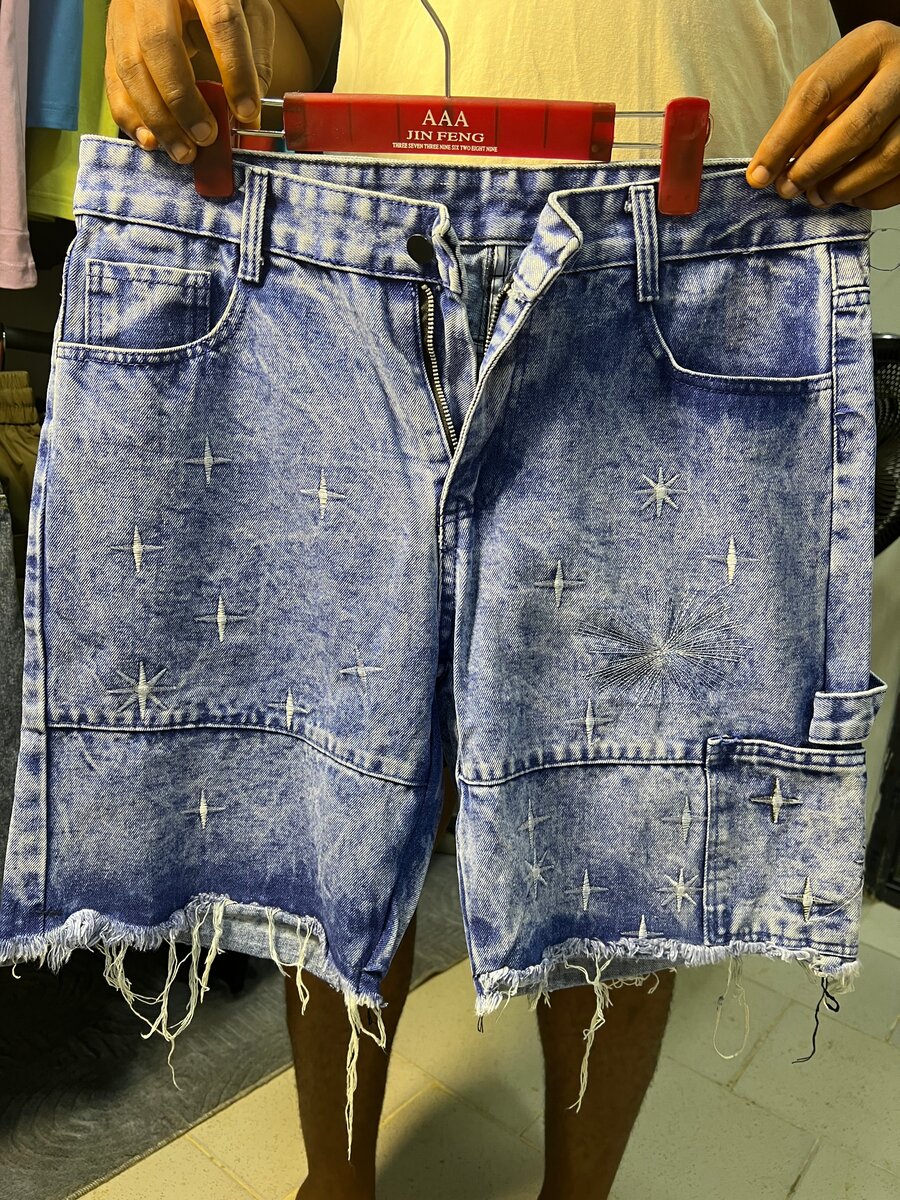 Découvrez ces superbes shorts en jean avec un effet délavé moderne et des détails brodés étoilés. Parfaits pour un look estival tendance. Conçus pour un confort optimal et une allure décontractée, ces shorts sont un choix idéal pour toutes vos sorties décontractées.