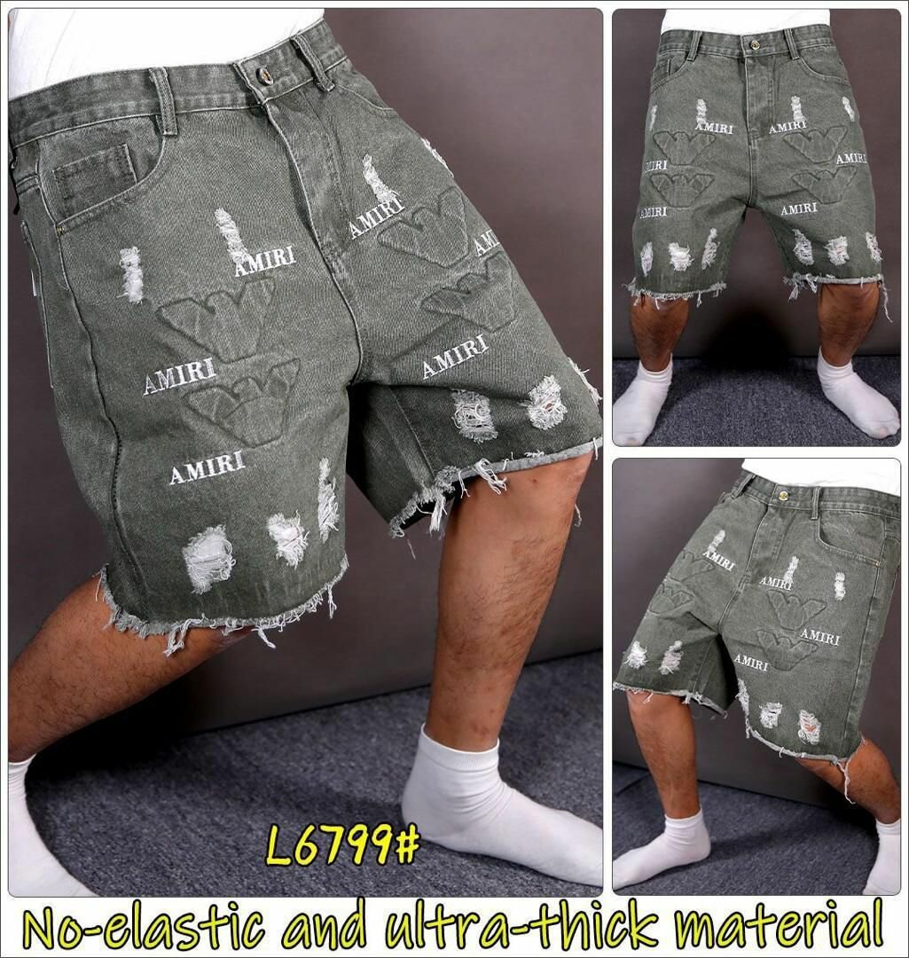 Découvrez nos shorts en jean robustes avec un design vieilli et des broderies tendance. Parfaits pour un style décontracté et moderne, ces shorts sont confectionnés avec un matériau ultra-épais pour un confort optimal. Idéals pour les sorties estivales ou les looks urbains, ils résistent à l'usure quotidienne et ajoutent une touche audacieuse à votre garde-robe.