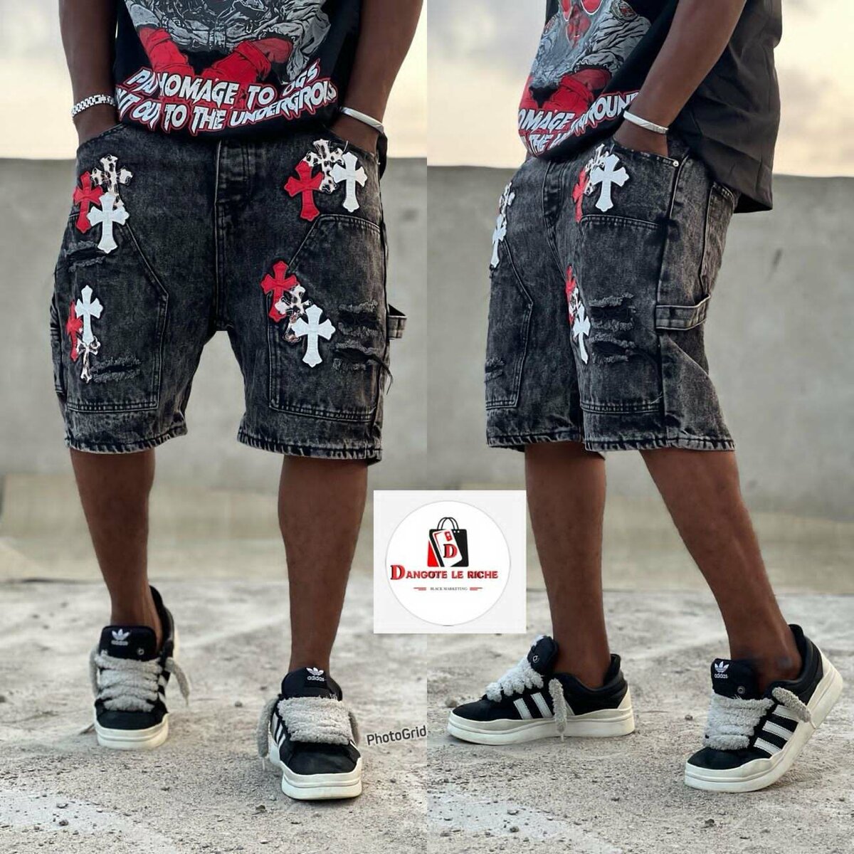 Optez pour ces shorts en jean au design unique. Parfaits pour un look urbain, ils se distinguent par leurs motifs croix et leur coupe confortable. Idéals pour les sorties décontractées ou les festivals, ces shorts ajoutent une touche audacieuse à votre garde-robe.