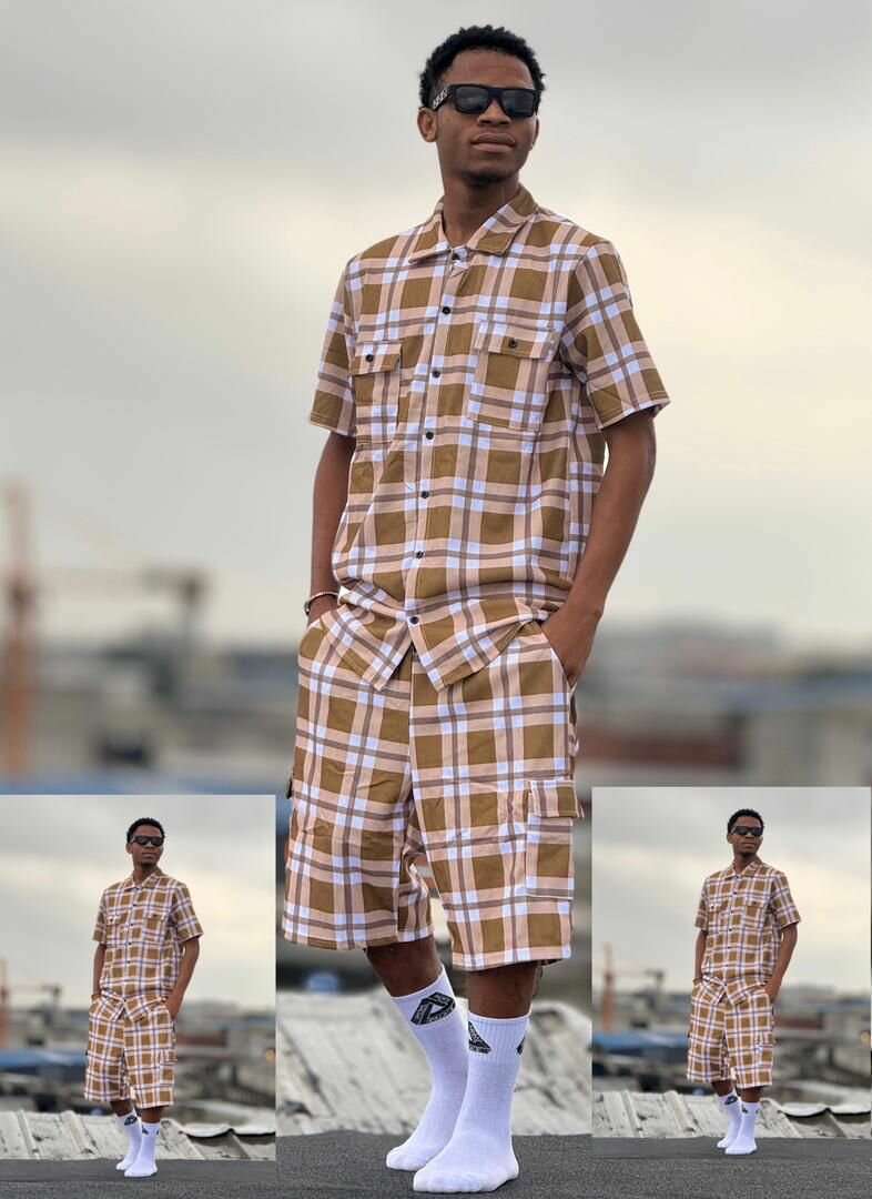 Ensemble moderne de shorts et chemise à carreaux pour homme. Léger et confortable, idéal pour une journée décontractée ou une sortie en ville. Fabriqué avec soin pour un look à la fois élégant et décontracté. Parfait pour les amateurs de mode soucieux du style avec un côté pratique.