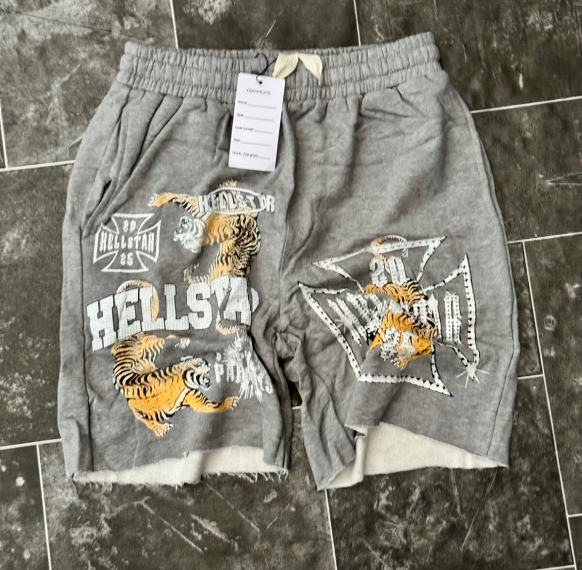 Optez pour un look décontracté avec ces shorts gris arborant un imprimé audacieux de tigres. Parfaits pour une journée détendue, ils combinent confort et style avec une taille élastique ajustable. Idéal pour vos aventures urbaines ou relaxer à la maison.