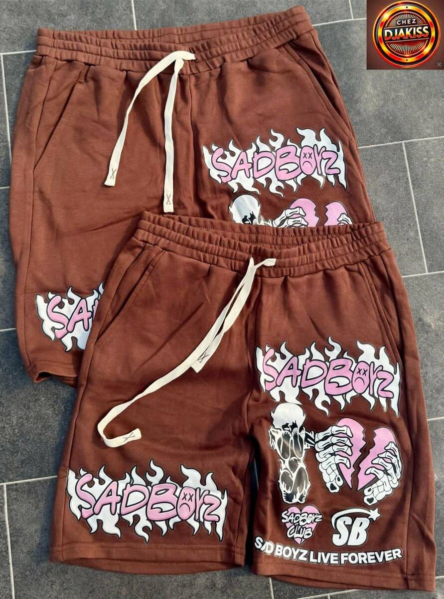Découvrez ces shorts marron "Sad Boyz" au design unique, idéal pour un look décontracté et tendance. Fabriqués avec soin, ils offrent confort et style grâce à leur coupe moderne et à leurs imprimés audacieux. Parfaits pour les sorties entre amis ou les journées détente.