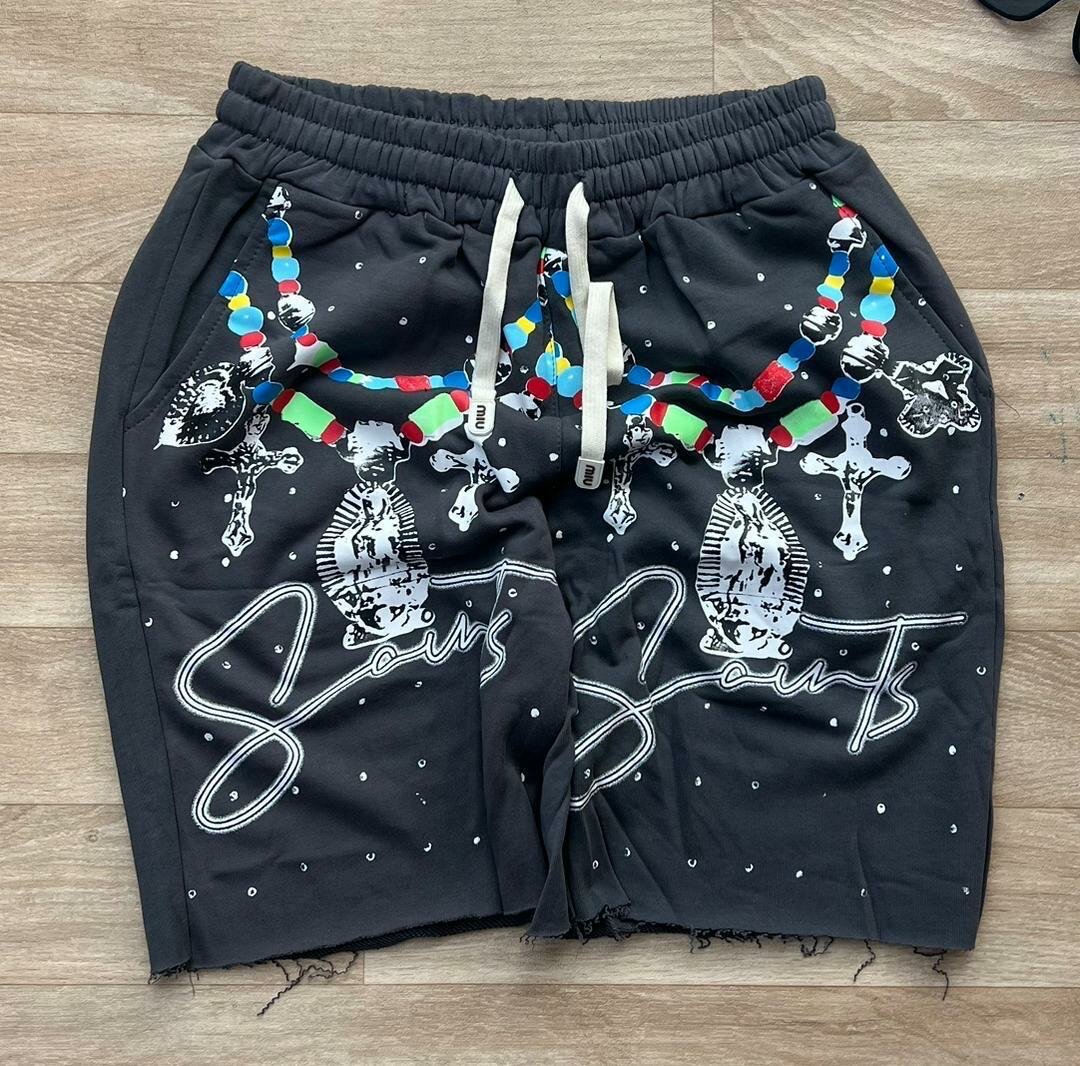 Découvrez ces shorts noirs à imprimé moderne, parfaits pour une allure stylée et décontractée. Idéal pour les sorties estivales, ils assurent confort et originalité avec un design unique. Parfait pour ceux qui apprécient le style urbain.