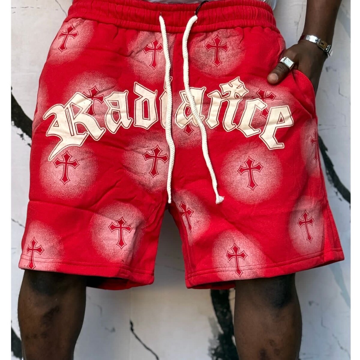 Découvrez le style urbain avec ces shorts rouges 'Radiance', parfaits pour un look décontracté et tendance. Leur design unique avec des motifs de croix et une inscription frappante assure une allure audacieuse. Idéal pour l'été, le sport ou les sorties, ce vêtement combine confort et mode.
