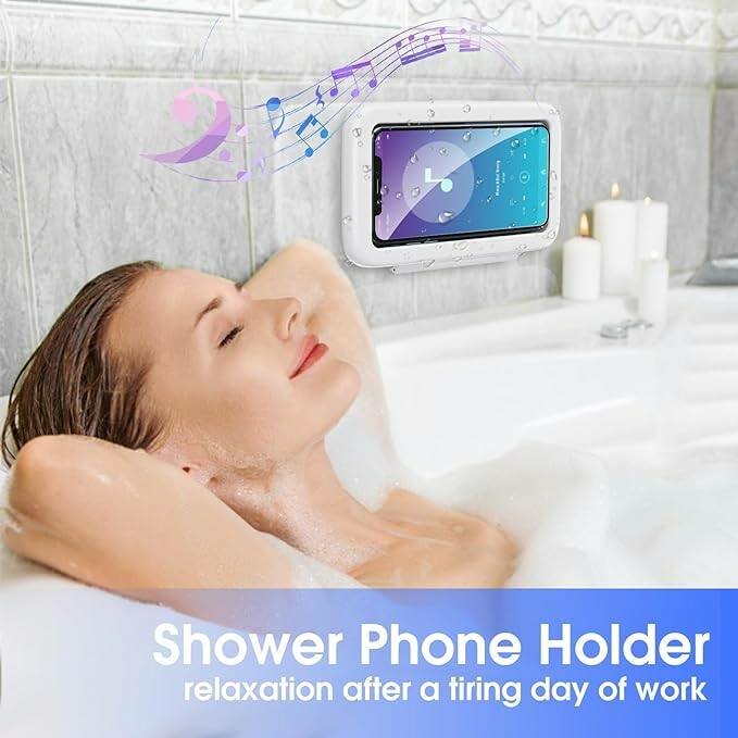 Waterproof Shower Phone Holder Colors: Blue, White, Yellow Sensitive Touch 7" Screen - 19.2cm x 12cm Waterproof and Anti-fog Rotate Screen 360°