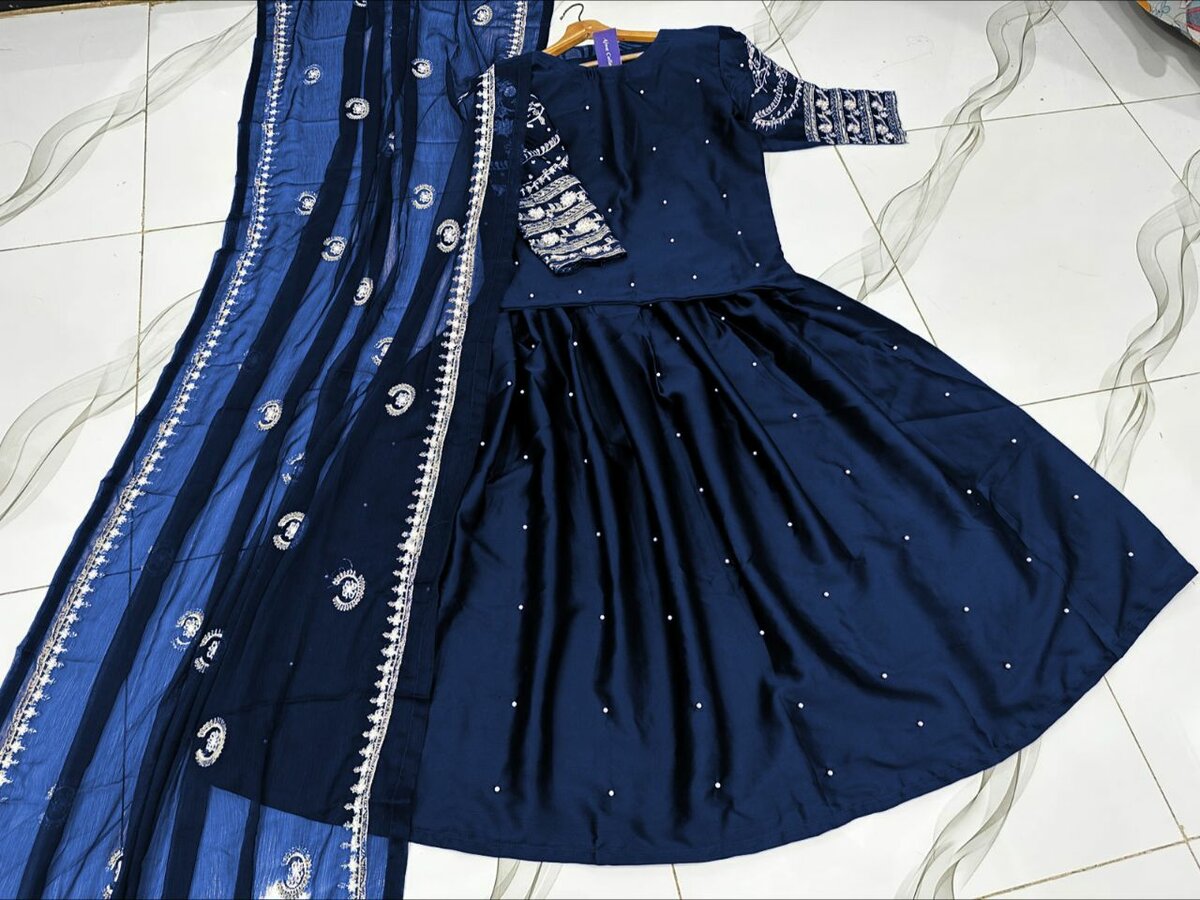 *EID 2025 ARRIVAL* Sleeves Embroidered With Pearls Attached Top And Pearls Work Skirt With Emb Dupatta 3Pcs Size Measurement Top Chest Size 20 Top Length 21 Top Stuff S