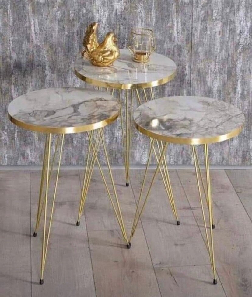 Gold leg with design marble veneer top