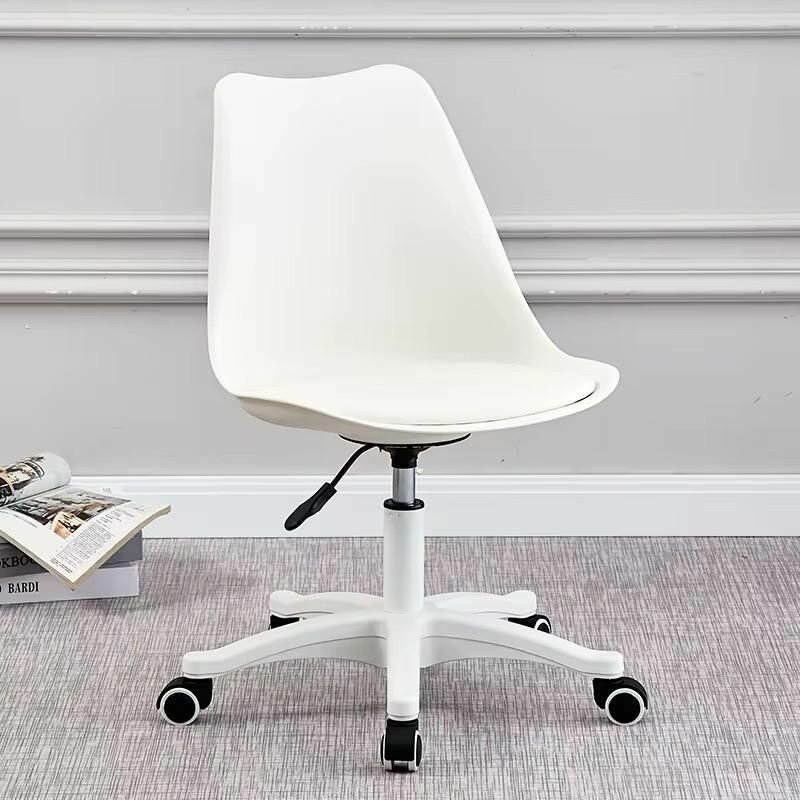 La chaise sur la photo est une chaise de bureau en acrylique transparent avec roulettes et réglage de la hauteur, souvent appelée "Clear Acrylic Office Chair".