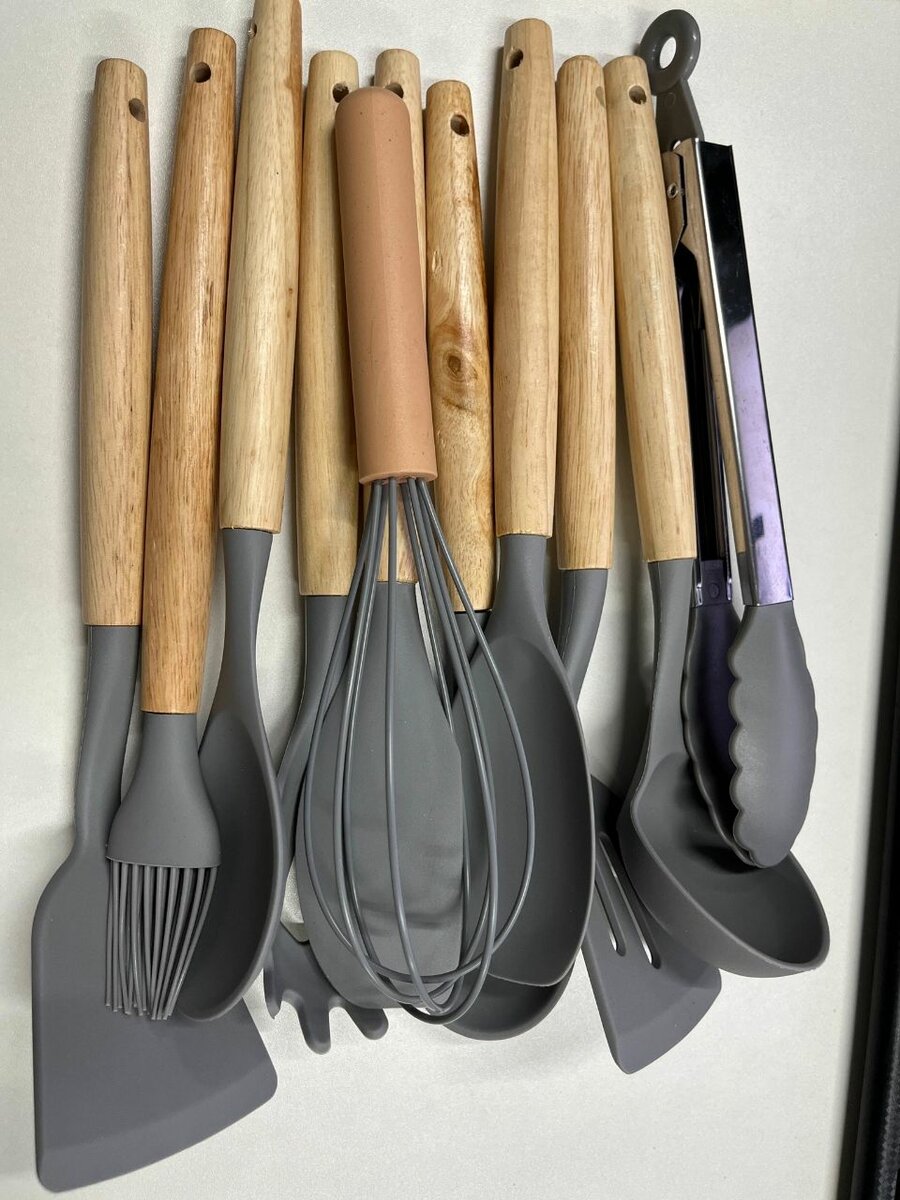 Upgrade your kitchen with this stylish and durable silicone utensil set, perfect for all your cooking needs. Made with heat-resistant silicone and ergonomic wooden handles, these utensils are ideal for non-stick cookware, providing a non-scratch solution for your kitchen. From stirring to serving, this set has everything you need, making it an essential addition for home cooks and professional chefs alike. Ideal for modern kitchens, these utensils offer an elegant aesthetic and superior functionality.