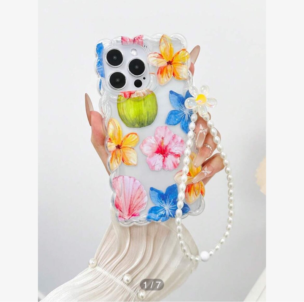 Coque de téléphone avec motif marin et cordon perlé