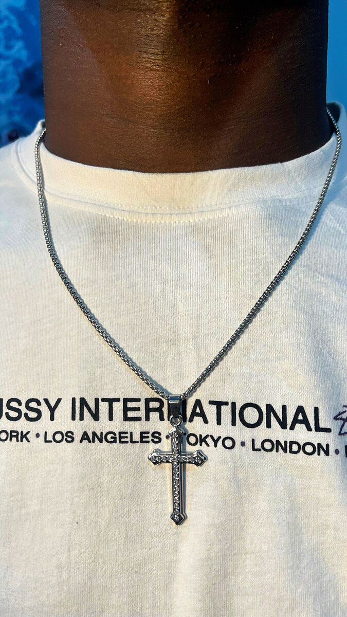 Elegant silver cross pendant necklace for a stylish look. Perfect for daily wear or special occasions. A meaningful gift for loved ones. Made from durable materials for long-lasting shine.