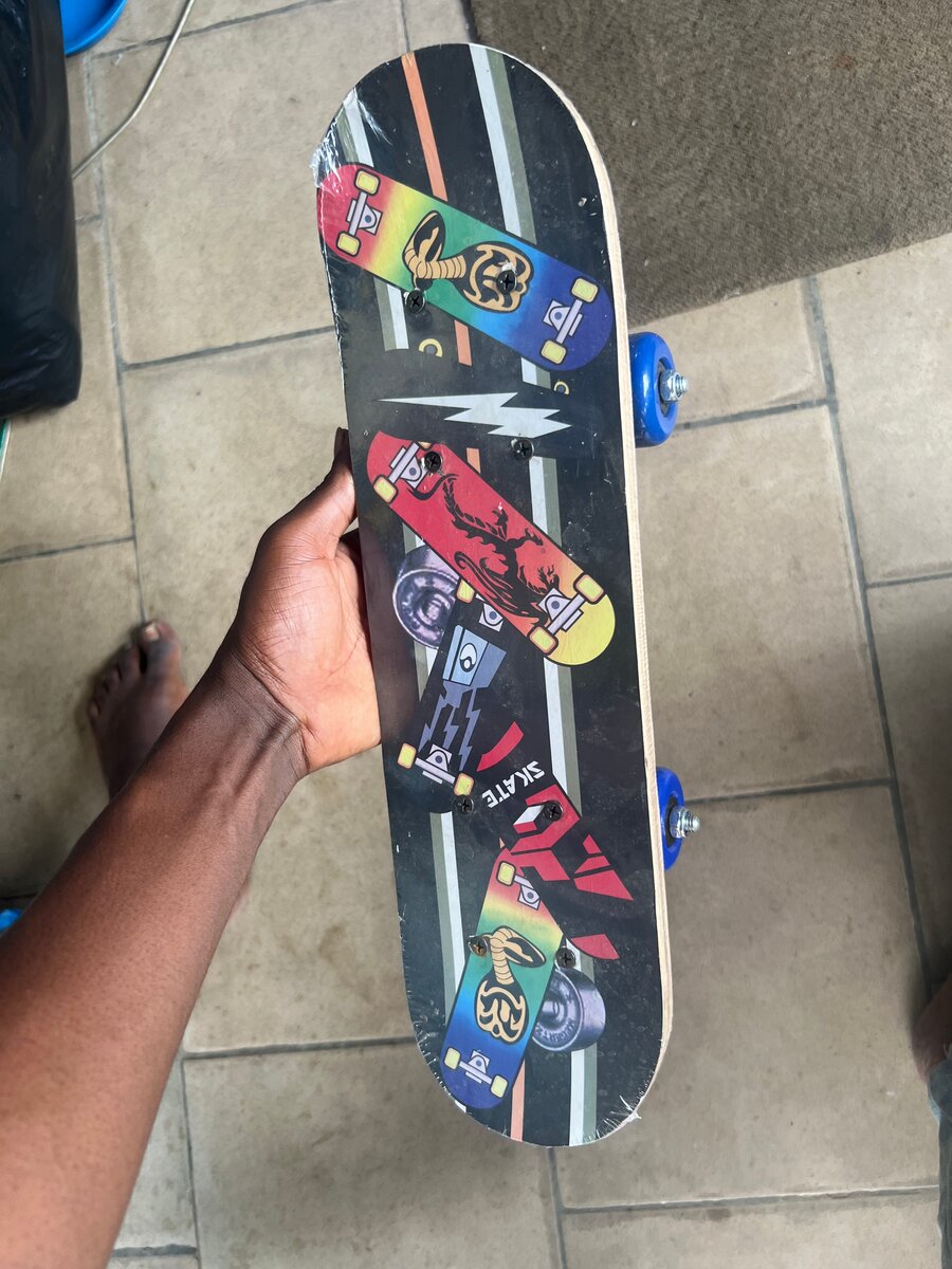Découvrez notre skateboard pour enfants, conçu pour les petits aventuriers. Avec sa conception robuste et ses roulettes bleues, il est idéal pour apprendre à glisser en toute sécurité. Parfait pour les enfants débutants.