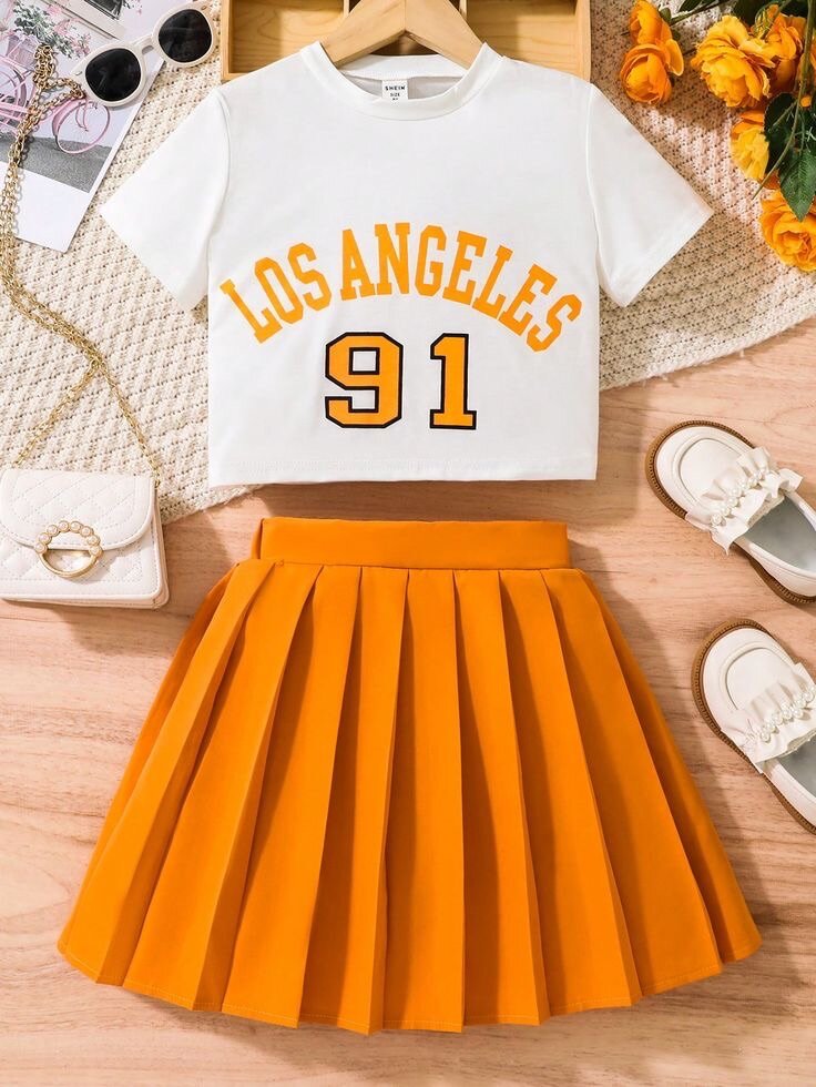 Young Girl Casual Elastic Waist Pleated Skirt. 4&7years.