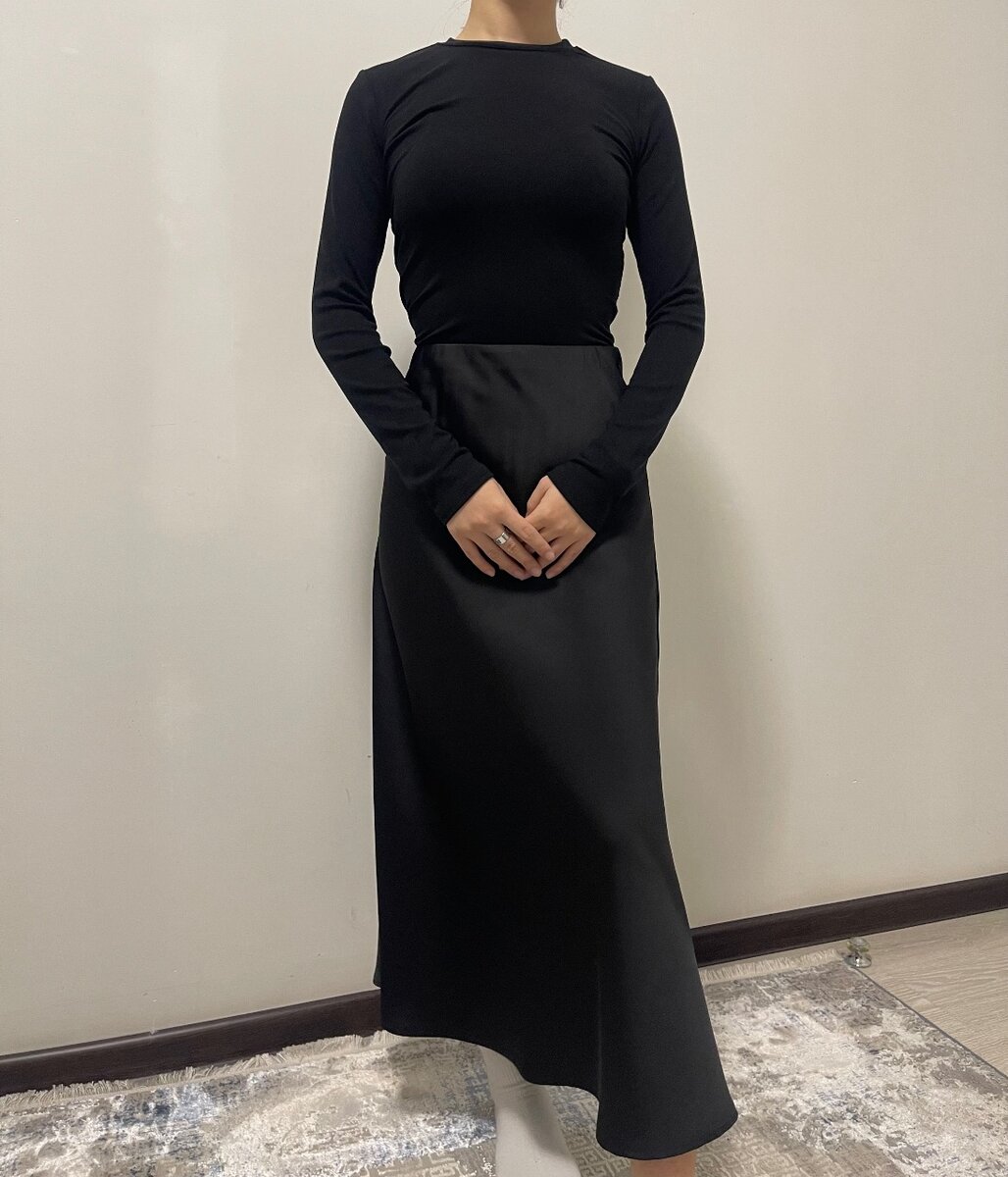 Материал: Гладкий, струящийся атлас, нежный к телу. Посадка: высокая талия, плавно облегает бедра. Длина: макси. Достоинства: Легкая, не сковывает движения.