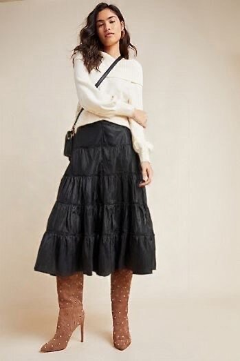 Натуральная чёрная кожаная юбка от DEMMY Турция Размер: M-L