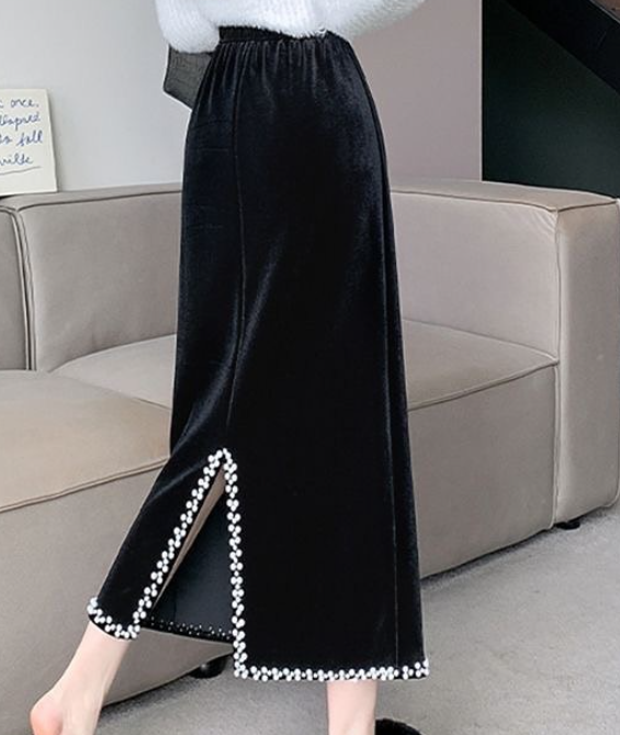 Золотая бархатная юбка с разрезом сзади, бархатная женская осенне-зимняя прямая юбка с драпировкой в стиле ретро, кружевная юбка средней длины, облегающая бедра