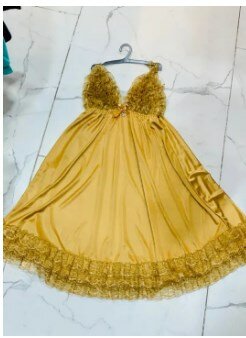 Women Robe Sleepwear Night Dress Pyjama Imitated Silk Nightwear Gown Babydoll yellow