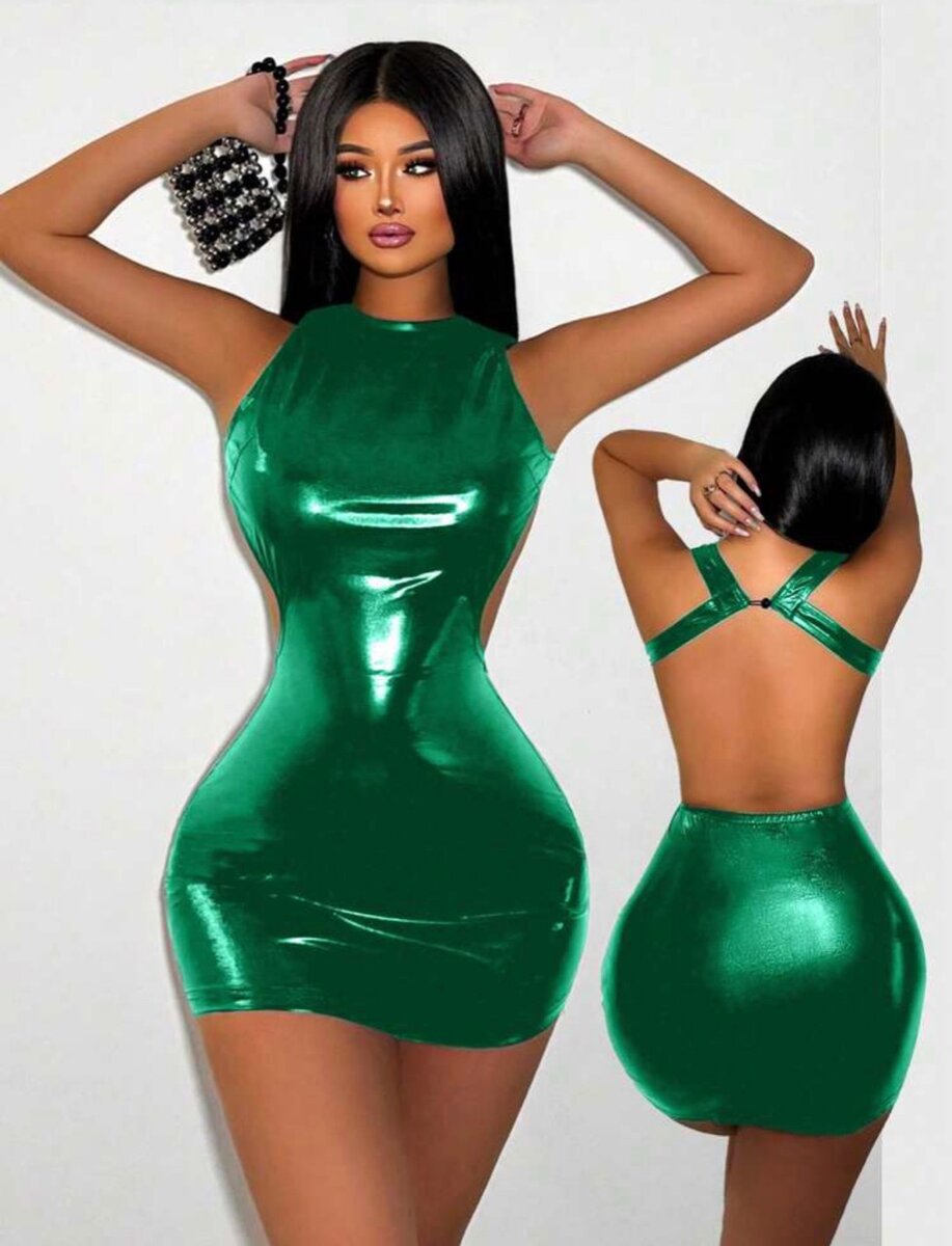 Sleeveless short dress with shinny back buttons